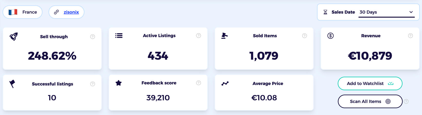 Par exemple cette boutique française génère 10 879€ par mois (soit environ 2000€ de profit) en revendant des produits Aliexpress sur eBay France